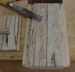 The problem I ran into was when it came time to shape the lids to fit the groove in the sides of the boxes. I mentioned milling the boards to required sizes in my previous post. One thing I discovered is that the fungus will transfer to other areas of the wood when you plane the board. It also seems to be somewhat abrasive so I decided to not use my bronze smoothing plane once I noticed that. Went to my 60’s era Stanley with a cambered blade and it worked just fine, after all; that’s all I had until I could justify the cost of Lie-Nielsens beauty a number of years ago.