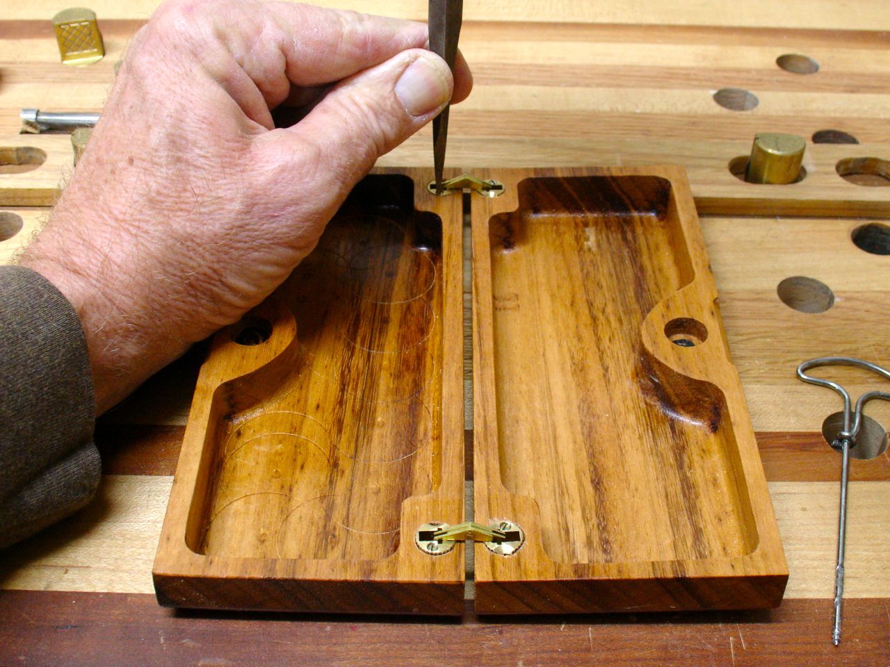 Use a stop to align sides and insert hinge gradually into the holes, alternate to keep things even.