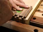 - Removing waste between tails, spacer under the rabbet steadies the board.