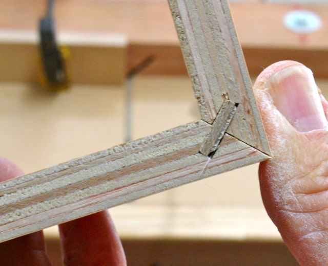 Test fit of spline into the saw kerfs.