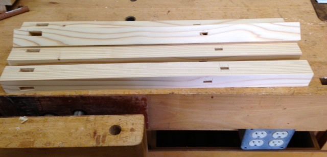 All mortises cut for top and bottom stretchers.