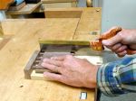The front of the box needed to be cut away so the lid can slide in and out. Careful work with a rip saw, block plane, and chisel to finish it off is all that’s required.