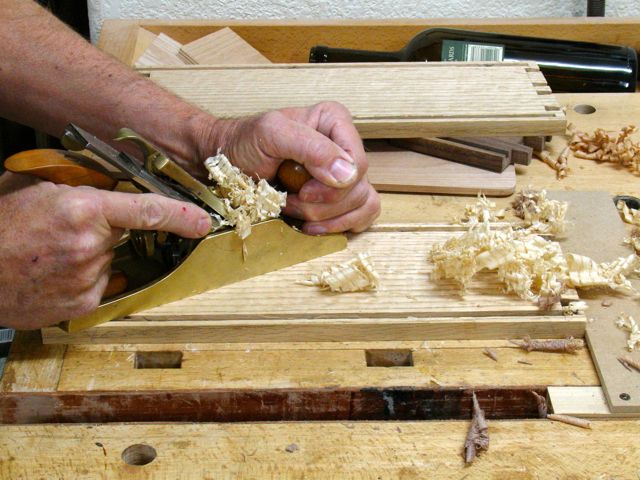 - Cutting front to size, followed by block plane.