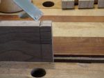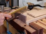 Now that the tails are done it’s time to transfer them to the pin board. Whenever possible I will leave the board longer than needed just in case of a major goof up. Kind of like Murphy’s Law. You know, if you’re making a project and decide to cut an extra piece or two “just in case” you rarely need them but; should you not cut that extra one, it’s for sure you will! What I did here was to leave the pin board long and cut the pins on both ends. After they were fit to the tails they were cut to length so that’s why they look way long in some of the pictures. The box measures 5″ wide by 14″ long.