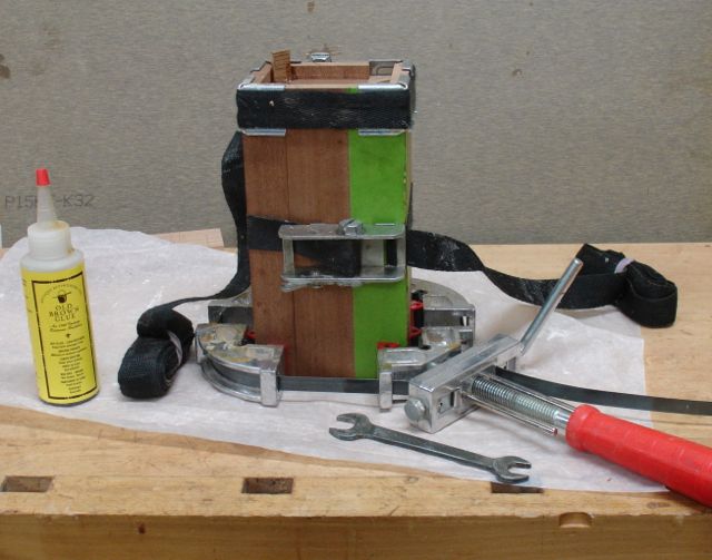 Three clamps, glued together, cure overnight