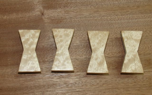 The template is a piece of 1/4″ MDF and the pulls were cut out on the bandsaw, then filed and sanded to final shape. Here are the four, I know there’s only 3 drawers but just in case! Ever notice when you make an extra piece for a project you seldom need it but if you don’t have it you will?