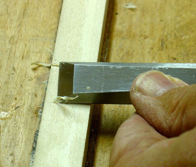 Scribed line outlined with chisel