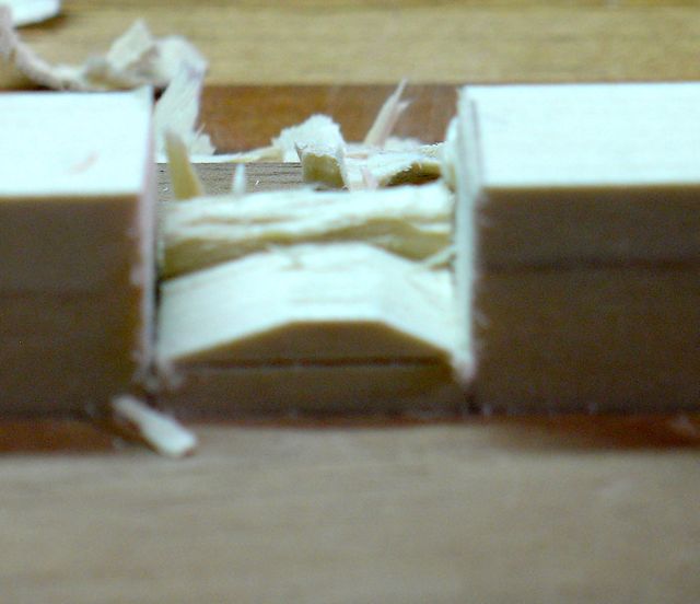 Initial material removed at angle from edge