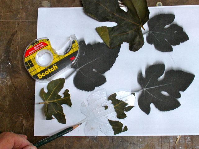 The first step though was making a template from the proper sized leaf that I cut from the tree. When using an image to create the template it’s easy enough to simply scan it, size it accordingly, then cut it out of a piece of metal. As you can see in the picture at the right, laying an actual leaf on the scanner and making a copy resulted in a fuzzy outline. What I ended up doing was to take a piece of plastic from some packaging and covering it with double stick tape. The leaf was then pressed onto it and cut out, the pencil is pointing to that template. It’s better and easier to have a template that can conform to the curves of the picture frame than trying to lay a piece of carbon paper and tracing it. Also, you can flip it over for a mirror image on opposite sides of the frame.