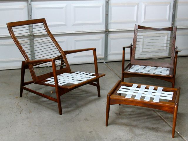 In my first post regarding these Danish Modern chairs made by the Selig company I gave a little bit of the company history.  This set, consisting of a recliner, chair, and ottoman were entrusted to me for refurbishing and they are now complete.  When you think of how long ago these chairs were originally made in Denmark and the fact that they’ve been in use since the 1950’s their condition is amazing.