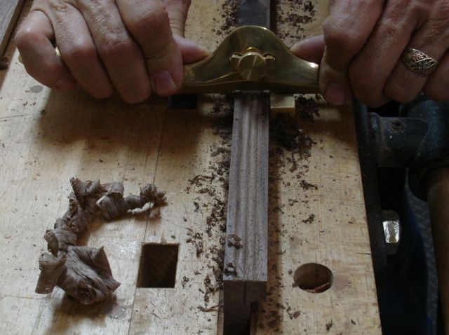 Some other woodworkers I’ve talked to mention that they have problems cutting with the #66 but if you begin by taking a series of fairly short (2″-3″ or so) cuts to introduce the cutter into the wood things should cut nicely and you can complete the piece with full strokes. You do need to allow some extra at both ends since scraping that cleanly is difficult.