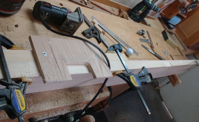 I used the same unorthodox way to drill the holes for the lockset. Having just one stile I was able to set it up on the drill press to ensure straight and accurate holes without the use of a template guide. Once the holes were drilled the mortise was cut for the latch. Sure have been getting lots of use from the small, router plane on this project.