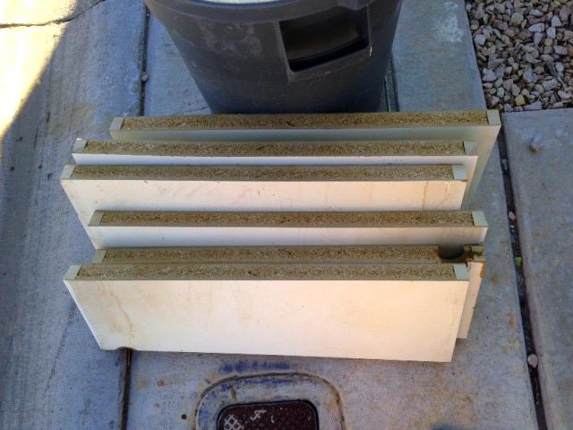 It took some final adjustments and fiddling around but all in all this project went rather smoothly. There always seem to some unforeseen things in any project. The positive things though is that I now have a door that isn’t delaminated and at the bottom and blistered on the surface, I can get light and air into my shop area and have full access to the tool chest and end vise, and finally don’t need to worry about Brandi getting out unnoticed! Here’s the old door, right where it belongs with the trash. Basically a solid block of particle board, yikes!