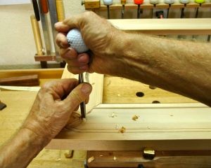 Awesome Bob, thanks for all the advice — I’ll try those techniques today. Much appreciated. Just FYI, I have a small v-chisel (4mm) which would have been ideal but I totally ruined it so it’s currently at Woodcraft being reground. I think I finally have a handle on maintaining an edge but as you know, they’re tricky! I find that even a sharp v-chisel can have problems at the miter on a frame with grain direction but as you know, it’s the challenge that keeps us motivated!