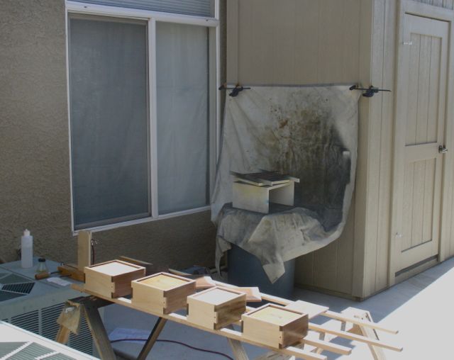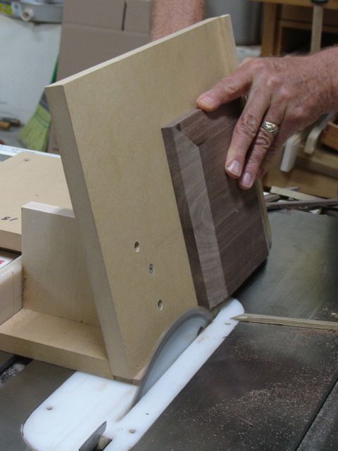 Once they were assembled the holes needed to be drilled out for the 3/16″ pegs centered in each tail. This was accomplished at the drill press with a tall fence. The last blog generated a number of comments about the box slotting bit that I used. The bit is available from Lee Valley to cut either a 1/8″ or 1/4″ slot for box bottoms. For these boxes I used 1/4″ hardwood plywood. The only thing you need to fit these properly is to create a radius on the outer corners. There are a number of ways to do this and my choice is to draw the radius on with a nickel and then remove it with a 1″ belt sander.