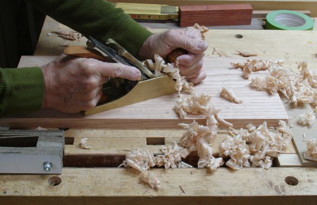This project gave me a nice break from the exacting work on the Armoire, started with smooth planing a piece of Home Depot Oak: