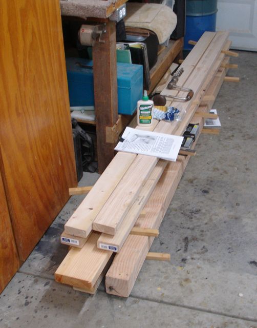 A pile of wood, glue, screws, and bolts