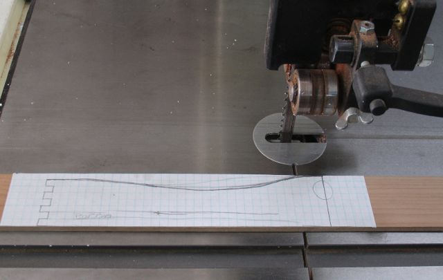 1.) Pattern drawn freehand on graph paper then cut on bandsaw.