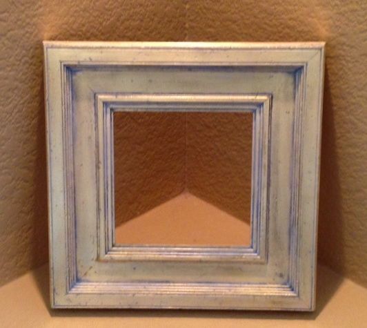 The first one to be completed was distressed using a bunch of nuts, washers, cotter keys, etc. that are on a cable. Just wanted to beat up the surface a bit so that toning would show up. I must admit that this is always a bit of a problem for me — beating something up to look old but that’s the routine for framing. To tone this particular frame casein paint thinned with distilled water was used. In this case, Payne’s Grey and Titanium White created the patina you see in the distressing and steps of this frame. Kind of replicates years of accumulated dust.