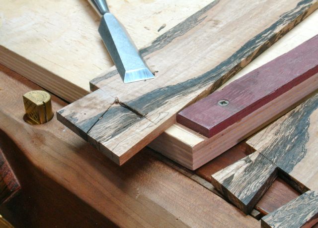 After planing one edge smooth and square the piece was resawn. This process began with two pieces about 3/8″ thick for the sides and then another two 9/16″ or so for the lid. I discovered that the spalting will change with every cut.