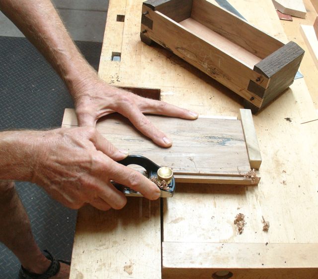 Whew — so far so good now let’s tackle that piece of Wenge! The first box has angled cuts on the top and bottom which were made on the tablesaw. I also was curious to see how this wood reacted to planing and/or scraping: