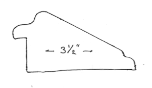 The frame I chose has this profile and is about 3 -1/2″ wide tapering from almost nothing to 1- 3/4″ in height. Now add the miter to it and you end up with an odd shaped design at the frame corners that resembles two thirds of a pyramid. For patterns I like to use the plastic container material used for salads. It’s easy to cut, flexible enough to press into the coves of a picture frame, they’re thick enough so a pencil traces the edge, and they’re easily flipped over when the sides of a design aren’t exactly the same which is the case here. To make the pattern is easy, use double stick tape and cut it out.
