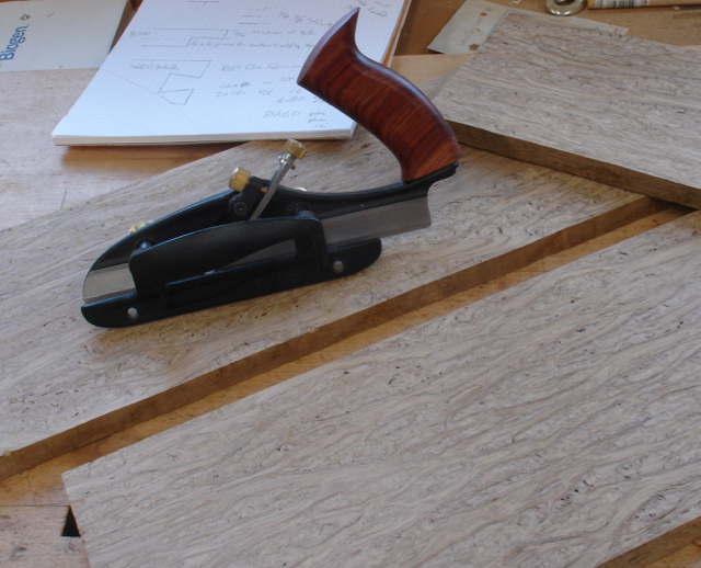 Another plane on my wish list was to replace to remedy the aggravation I’d had with my old Stanley #78. This is the Veritas skewed rabbet plane shown here sitting among the boards of Flame Oak for the box to be! I use the Stanley 140 trick for all of my drawer and box construction. It’s been written up in Fine Woodworking and I did this blog on it a long time ago. Lately I’d cut the shoulder on the tablesaw but that really wasn’t the safest way to go about it. So I’m not getting any younger and woodworking is my passion so decided to bite the bullet and purchase this plane hoping that it would do the same work as a pair of the 140’s plus have a depth stop. The blade is 1 1/2″ wide so I’ll be able to raise panels with it as well. Let me add my 2 cents about Veritas vs. Lie-Nielsen. In my opinion, L-N is a superior tool; I say that based on their finish, tight tolerances in threaded parts, and over-all quality. I’ve had students that bring their Veritas tools and there’s just something about them that doesn’t feel right in my hands. Perhaps that’s because I grew up using Stanley and at 67 my habits and perceptions are set. All that being said, I wouldn’t hesitate recommending either one of these Veritas planes to anyone.