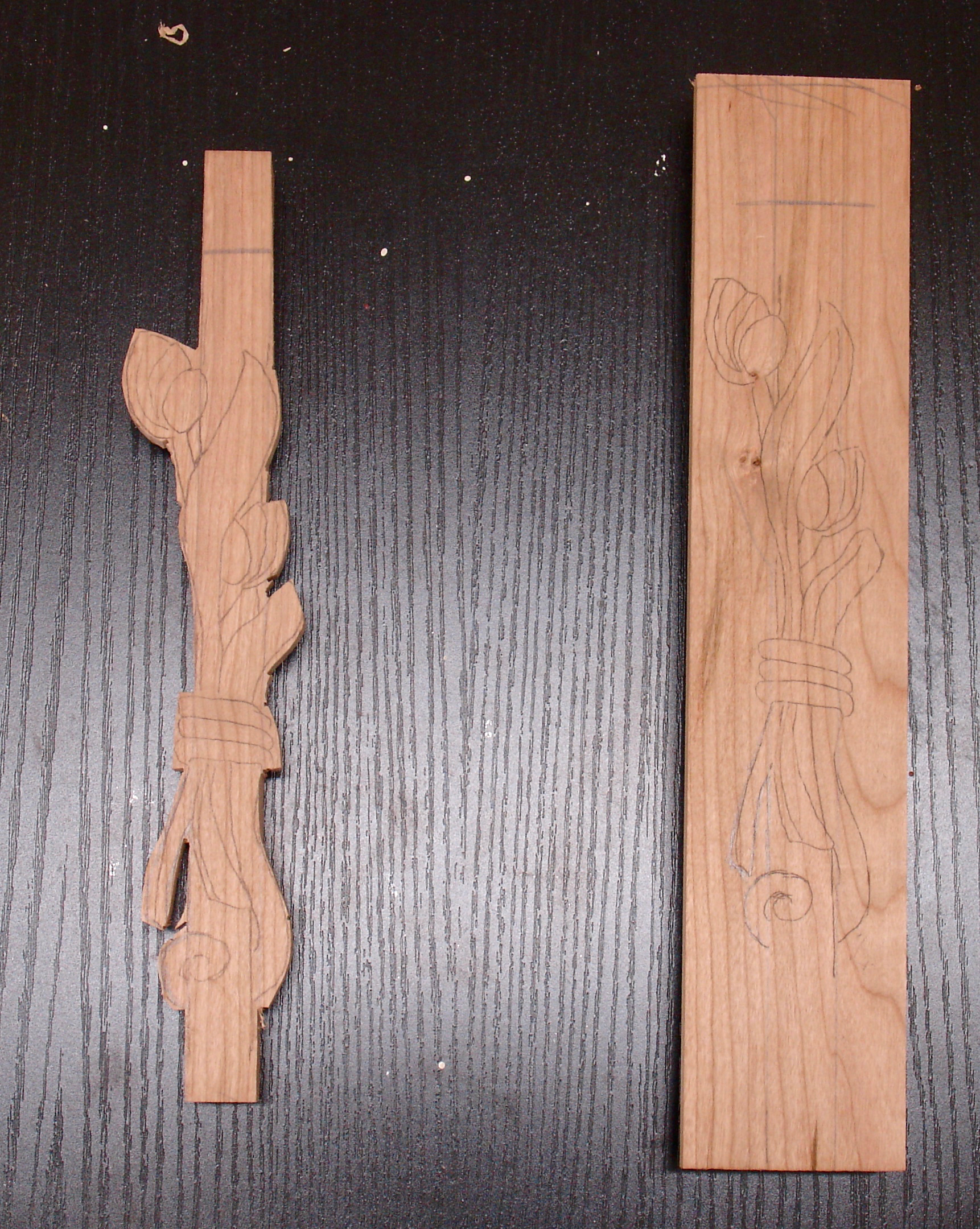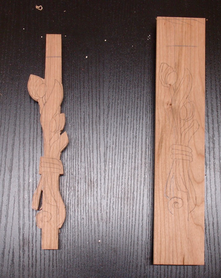 T-shaped Cherry with motif roughed out