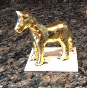 In addition to gilding the horse, Charles also discussed gilding picture frames since he knew that was my main interest. We were able to work on a section of French molding, Charles put a sequence of photos on his on his Instagram page. He took the time to share some techniques used to tone picture frame molding too. The pictures of that molding after it’s been gilded don’t begin to do it justice — you’ve got to see it!