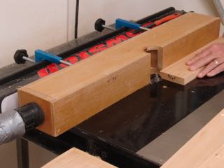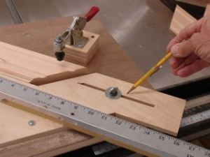 After all of the molding is profiled it’s time to cut them to length. There are two critical requirements for a good frame, first the miter has to be exactly 45° and the lengths of opposing pieces have to be exactly the same. Since these frames are so small, I needed to modify the miter jig and add a new stop to it. After cutting a slot in a piece of plywood a threaded insert was put into the jig. The stop is slid where needed and then tightened with a thumb screw. I’ve been asked about making this jig, here’s a LINK to the blogpost of the first one I made.