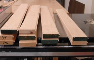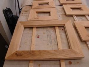 The client I recently completed the Tabernacle frame for, Christine Vallieres; contacted me and needs a number of frames for an upcoming show she has in March. She’s a very good client and her show will be held at The Sagrado in Phoenix. For this job there are 7 different frames so it’s important for me to organize the work flow to stay efficient. One starts out with 1 – 1/16″ Basswood, the others are smaller and for panels so were made from 4/4 Basswood. All are created using a combination of tablesaw, router, and hand work. Shown above are the profiles for the smaller (4×6 and 5×7) frames which are what I call The Christine Profile. These are 3 1/4″ in width.
