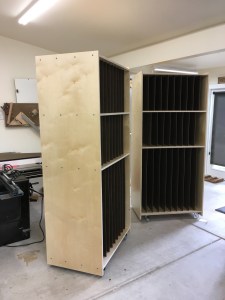 That’s it for now, the exposed edges of the plywood have been sanded and sealed with polyurethane. The carpet should arrive the middle of next week so there’s plenty of time to put it all in place. As much as I enjoyed this project ready to go back to working with real wood — Diane needs about 3 frames and I’ve been contacted about making a small run of tables but that’s just in the “talking” stage. Looking forward to having a new, cat buddy. She had her litter and Diane and I have received several video’s of her and the babies.