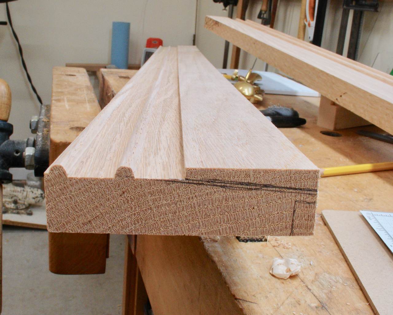 Dado between beads, ready for angled cut