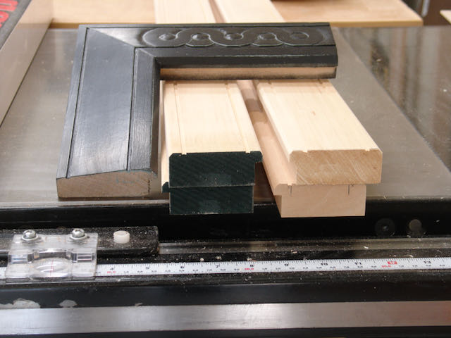 These pictures show the progression, once the pieces were sized the edges were given a 45° chamfer with the table saw then saw marks were removed with a block plane. Not shown are the two shallow grooves which establish the boundaries for the Guilloche and cutting of the rabbet.