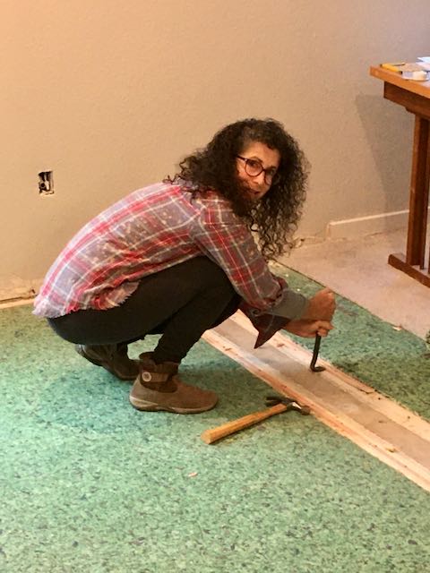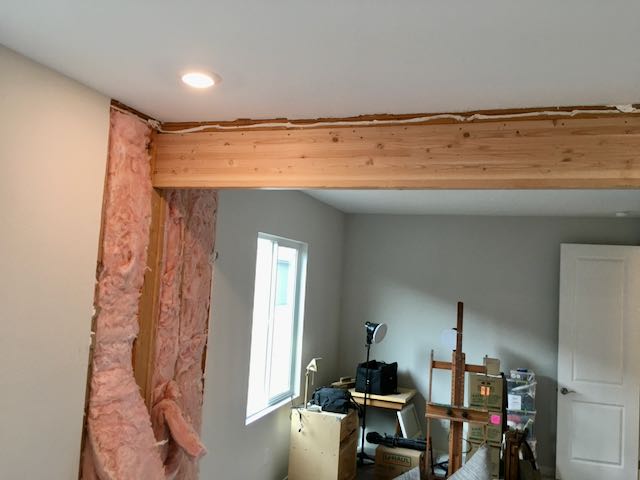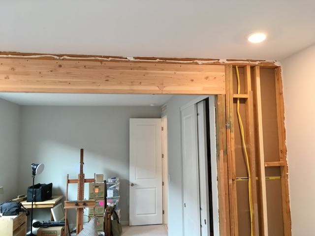 The biggest difference is that now, instead of having an existing “shop” that needs a ton of work to turn it into my “happy place” I now have a blank slate in the form of a 2 car garage! The process began with a scaled drawing but now that I’m here I can visualize the space and eventual results. Our plan was to remove a wall between a bedroom and the den to create an art studio for Diane. As luck would have it, this wall is a bearing wall. We were extremely blessed to have the superintendent of this development help us with this project. He introduced us to some of the original workers who built our house and they were willing to work with us in their off-time on our remodel. Electrician, framers, and drywall is what we needed and they worked efficiently and for a good price! I removed the drywall first, then the electrician changed and re-routed some wiring that was in the wall. Next up were the framers and drywall. Diane and I did the painting and laid a beautiful vinyl plank floor. We’ve ordered a set of French doors with rain glass to close it off. As we speak, Diane is able to work in her new space — a sheet stapled across the main entrance keeps Khali out and off of Diane’s palette!
