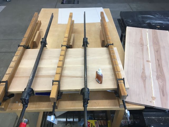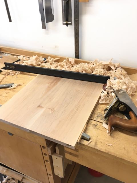 I purchased 8/4 and the main goal was to get 7″-8″ width so I could resaw and book match them yield panels around 16″ wide. My usual sequence is to plane a good edge, resaw, then run through the planer to get both pieces the same thickness. After establishing a good edge on both pieces with my old #7 Stanley corrugated plane they are glued up with Gorilla glue and panel clamped overnight. For some unknown reason every one of the panels cupped and if anyone who reads this has an idea why I would certainly appreciate your thoughts! This piece was designed based on my 15″ planer. What I do is plane the cup out of one side as good as I can, then rip the panel to where it just fits in the planer to smooth out the other face which will be finished off with hand planes. This cupping of the panels is what caused my battle with the Birch!