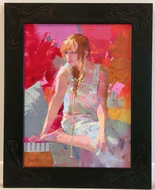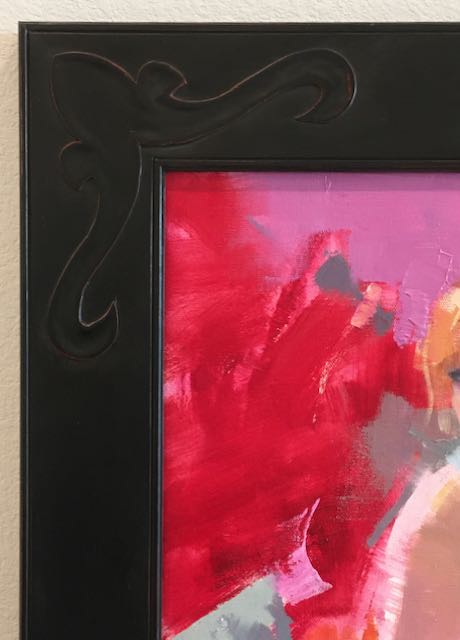 This painting by my wife, Diane; is on stretched canvas and measures 18″ x 24″. Regular readers of my blog know that I often get inspired to create a frame when I see the work in progress, just gets the wheels turning in my head! True to Diane’s figurative style this painting gives an impressionistic feel to a traditional subject. I wanted the frame to reflect that. Contemporary style is more straight lines and flat surfaces as opposed to Baroque style which would be the direct opposite with curves, beads, and other ornamentation.