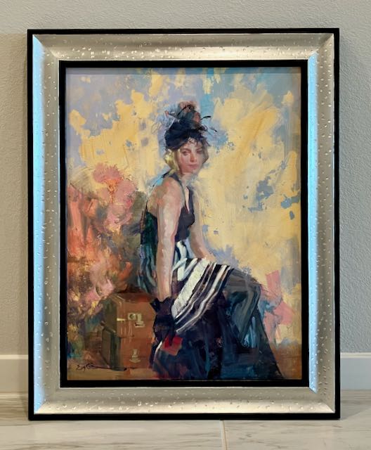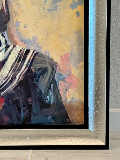 The title of this 18″x24″ oil on stretched canvas is The Parisian, painted by Diane Eugster. Since posting this frame and painting I’ve received a number of comments about how the frame was made and how long it took. It’s interesting to me how often people ask how long a project takes to complete so this was one of those occasions where I kept track of my actual work time. This particular frame took approximately 10 hours of actual work time. To be honest, I’m not that concerned about how long projects take; my motivation is more about meeting the challenge and accomplishment a goal. Many furniture projects take 50-80+ hours but my adage is that time is care, not the familiar one of time being money.
