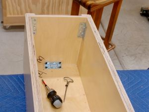 For a traditional drawer with a solid wood bottom the grain should run from front to back and it should be fastened so that it can move with the seasons. For this, with a 1/8″ Birch plywood bottom that’s not a concern. Now that the drawer is together (Old Brown Glue) the fitting process begins. That’s a trial and error process and way to involved to write up!
