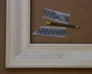 2.) Once outline is carved, details are added with transfer paper